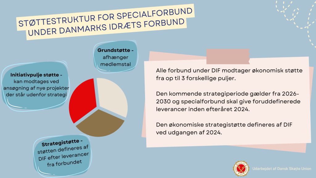Udviklingen i dansk idræt går stærkt, og vi er ikke blege for at hoppe på vognen, og i et tæt samarbejde med Danmarks Idrætsforbund arbejder vi strategisk med unionens udvikling – dette kender nogen som vores strategispor. Disse strategispor er en strategisk og politisk aftale med Danmarks Idrætsforbund, som giver unionen en værdifuld mulighed for at konstant være aktuelle for vores medlemmer – børn som voksne. Den økonomiske støtte fra Danmarks Idrætsforbund defineres ud fra ovenstående af Danmarks Idrætsforbund ved udgangen af 2024 og udgør en central del af unionens samlede økonomi.