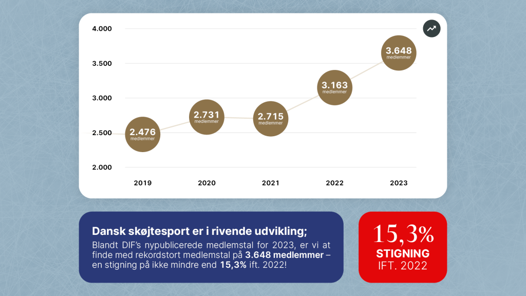 Nu er de nye medlemstal for 2023 klar, og vi har – endnu en gang – sprængt alle rammer for udviklingen i medlemstallene inden for skøjtesporten! Vi er gået fra et rekordstort medlemstal i 2022 på 3.163 til et rekordstort medlemstal i 2023 på 3.648! En fremgang på ikke mindre end 15,3%.